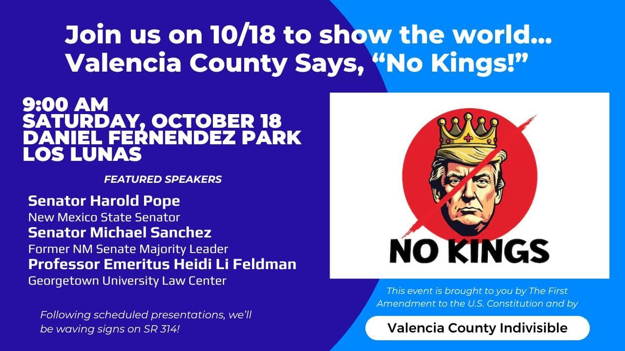 Other participants focused on the importance of participating in this coming weekend's No Kings 2.0 Protests, which will be taking place across America on Saturday, October 18. I have been invited to speak at rally in Valencia County, New Mexico, south of Albuquerque, in a redder part of the state.